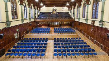The Assembly Hall is musically well equipped, with fine acoustics, a rear balcony, cathedral ceilings, the RMP’s Grand piano, and an early Fincham Organ. The venue has a great history of musical performances throughout its century-long history.